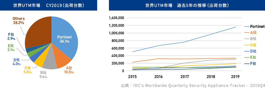 優れたコストパフォーマンスで多彩なセキュリティ機能を提供する「FortiGate」は、2004年以降、16年連続でUTM市場シェアNo.1を獲得しています。